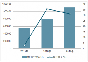2015-2017年中國鋰離子電池產(chǎn)量及同比增長走勢
