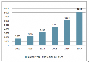 2012-2017年中國在線旅行預(yù)訂市場交易規(guī)模走勢