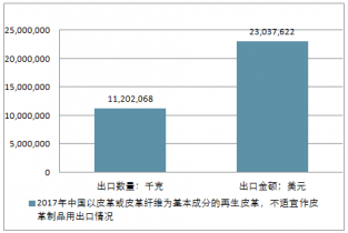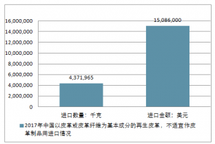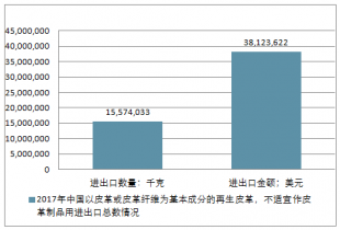 2017年中國以皮革或皮革纖維為基本成分的再生皮革,不適宜作皮革制品用進(jìn)出口總量15,574,033千克,進(jìn)出口總金額38,123,622美元。
