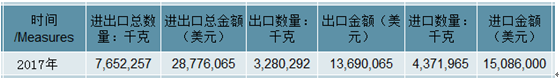 2017年中國以皮革或皮革纖維為基本成分的再生皮革,成塊、成張或成條,不論是否成卷進出口數(shù)量情況