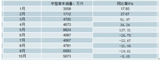 2018年10月中型客車銷量為5673輛,同比下降5.05%。2018年1-10月中型客車銷量為48291輛,同比增長6.83%。