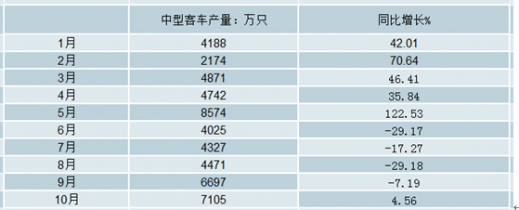 2018年10月中型客車產(chǎn)量為7105輛,同比增長4.56%。2018年1-10月中型客車產(chǎn)量為51331輛,同比增長11.29%。