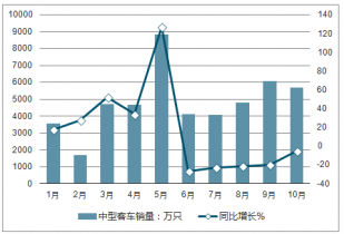 2018年1-10月全國中型客車銷量及增長(zhǎng)走勢(shì)