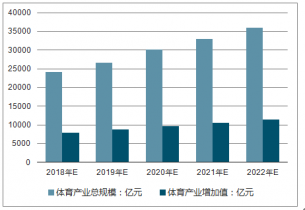 2012-2016年我國(guó)體育行業(yè)產(chǎn)值和增加值五年年均復(fù)合增長(zhǎng)率分別為18.94%和19.87%,增長(zhǎng)十分迅速。在國(guó)家政策大力支持引導(dǎo)下,預(yù)計(jì)到2020年我國(guó)體育產(chǎn)業(yè)總產(chǎn)值能順利實(shí)現(xiàn)突破3萬(wàn)億的目標(biāo),到2022年體育產(chǎn)業(yè)規(guī)模將進(jìn)一步超過(guò)3.5萬(wàn)億,增加值也將達(dá)1.14萬(wàn)億。
