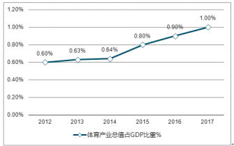 2012-2017年中國(guó)體育產(chǎn)業(yè)總值占GDP比重走勢(shì)