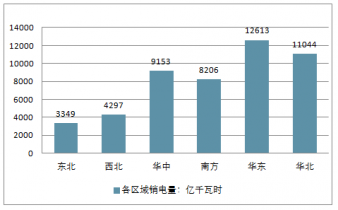 從各區(qū)域售電情況來看,2017年華東地區(qū)銷售電量位居第.一,為12613億千瓦時,占全國售電量的25.92%;其次為華北地區(qū),2017年售電量為11044億千瓦時,占全國售電量的22.70%;華中地區(qū)則以9153億千瓦時,全國占比18.81%,位居第三。從各區(qū)域售電量情況來看,售電量情況與主要集中在經(jīng)濟較為發(fā)達的華東、華北和南方地區(qū)。