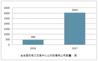 2016-2017年全國在電力交易中心公示的售電公司數(shù)量