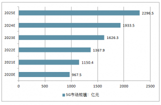 預(yù)計到2020年我國5G產(chǎn)業(yè)市場規(guī)模將達到967.5億元,到2025年將達到2296.5億元。