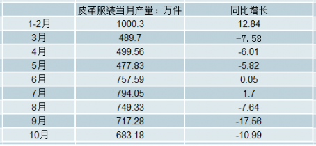 2018年1-10月中國皮革服裝當月累計產(chǎn)量及增長情況