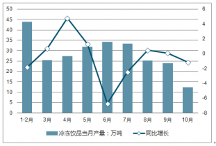 2018年1-10月全國(guó)冷凍飲品當(dāng)月產(chǎn)量及增長(zhǎng)走勢(shì)