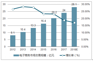 2012-2018年中國電子商務(wù)市場交易規(guī)模及同比增長走勢