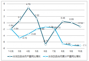 2018年1-10月全國(guó)冷凍飲品產(chǎn)量增長(zhǎng)走勢(shì)