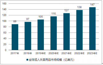 2017-2023年全球成人失禁用品市場規(guī)模走勢圖(億美元)