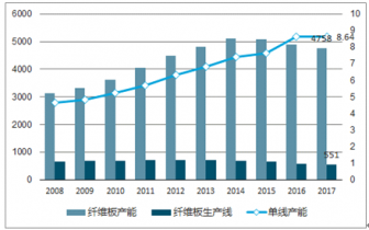 隨著我國纖維板生產(chǎn)制造設備的自動化程度提高,2017 年,纖維板制造企業(yè)的年平均產(chǎn)能已達 10 萬立方米。同時,單條纖維板生產(chǎn)線的平均產(chǎn)能也由 2008 年的 4.65 萬立方米/年增長至 2017 年的 8.64 萬立方米/年,呈現(xiàn)較為明顯的規(guī)模經(jīng)濟效應。
