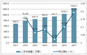 2011-2017年中國二手車交易量