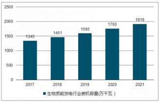 2019年中國生物質(zhì)能發(fā)電行業(yè)裝機容量達到1,345萬千瓦時,未來五年(2020-2026)年均復(fù)合增長率約為9.28%,2021年中國生物質(zhì)能發(fā)電行業(yè)裝機容量將達到1,918萬千瓦時。
