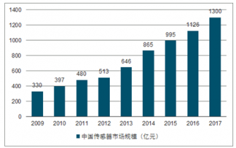 2009-2017年中國傳感器市場規(guī)模增長情況