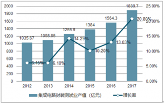 中國集成電路封裝測試業(yè)市場規(guī)模及增速