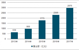 2013-2017年中國(guó)互聯(lián)網(wǎng)廣告營(yíng)業(yè)額統(tǒng)計(jì)