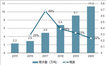 二、鋰電池電解液市場(chǎng)消費(fèi)量及增長(zhǎng)情況