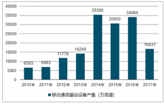 2010-2017年中國移動(dòng)通信基站設(shè)備產(chǎn)量