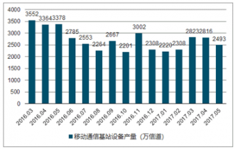 2016-2017年中國移動(dòng)通信基站設(shè)備單月產(chǎn)量分析