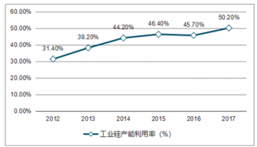 2012-2017年工業(yè)硅產(chǎn)能利用率變化趨勢(shì)(單位:%)