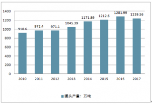 2010-2017年中國(guó)罐頭產(chǎn)量走勢(shì)