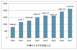 2010-2017年中國(guó)罐頭行業(yè)市場(chǎng)規(guī)模走勢(shì)