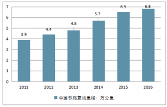 2011-2016年中國復(fù)線里程(單位:萬公里)