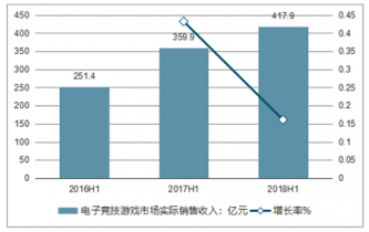 2018年中國電子競技游戲市場實(shí)際銷售收入達(dá)到417.9億元,同比增長16.1%。