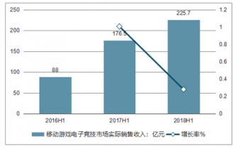 2016-2018年上半年中國移動電子競技市場實(shí)際銷售收入及同比增長走勢