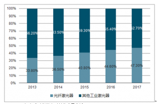 2014-2017 年全球光纖激光器占工業激光器比重增大