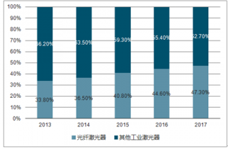 光纖激光器在工業激光器的份額不斷提升
