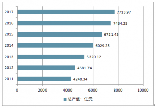 2011-2017年我國(guó)金屬加工機(jī)械制造行業(yè)銷售收入走勢(shì)