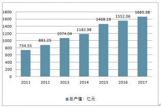 2011-2017年中國化妝品總產(chǎn)值走勢