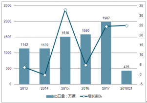 2013-2018Q1年中國摩托車出口量及增長走勢