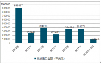 2012-2018年中國(guó)柴油進(jìn)口金額分析