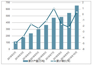 2018年2-10月中國鋁合金各月當(dāng)月產(chǎn)量及同比增長走勢