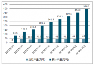 2018年2-10月中國鉛各月當月產(chǎn)量及累計產(chǎn)量走勢