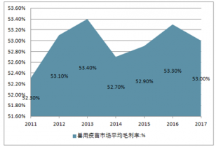 2011-2017中國獸用疫苗市場平均毛利率走勢
