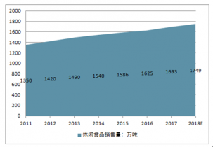 2011-2018中國休閑食品銷售量走勢