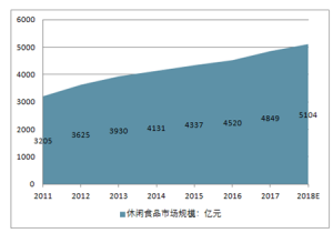 2011-2018中國休閑食品市場規(guī)模走勢