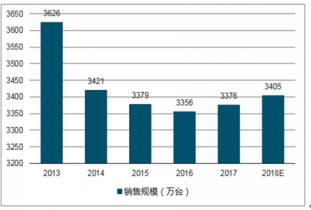2013-2018年中國冰箱銷售規(guī)模統(tǒng)計情況(萬臺)