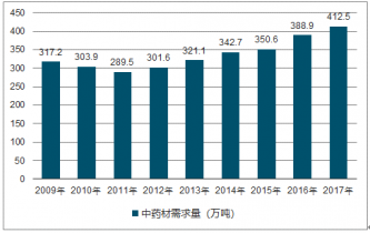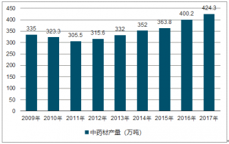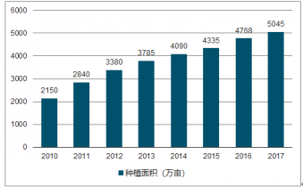 2010-2017年我國中草藥種植面積分析