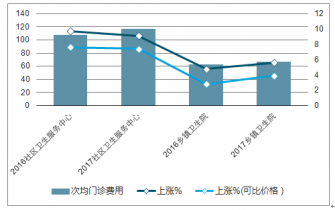 2016-2017年中國基層醫(yī)療機(jī)構(gòu)病人人次均門診費(fèi)用及上漲走勢