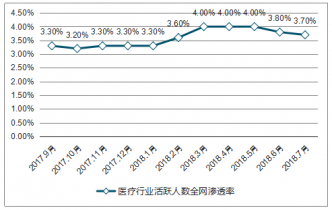 (2017年9月-2018年7月)醫(yī)療行業(yè)活躍人數(shù)全網(wǎng)滲透率趨勢分析