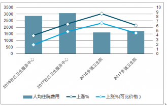 2016-2017年中國基層醫(yī)療機(jī)構(gòu)病人人均住院費(fèi)用及上漲走勢