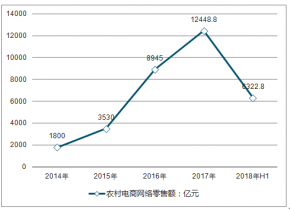 2014-2018年中國農(nóng)村電商網(wǎng)絡(luò)零售額走勢(shì)