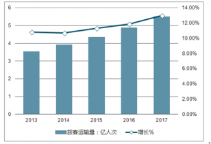 2013-2017年全國民航旅客運(yùn)輸量及增長走勢